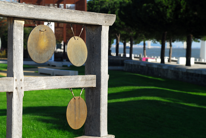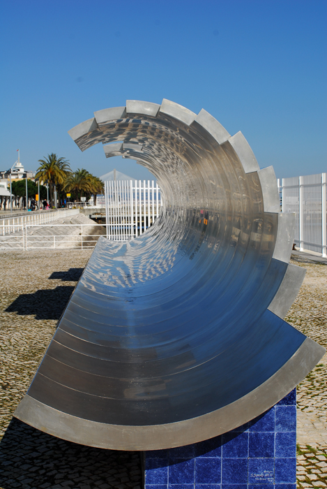 Continuamos pelo Passeio do Neptuno até encontrarmos o Jardim da Água, um espaço lúdico onde o visitante pode interagir com os diferentes equipamentos. Aqui os bambus, a pedra e a água são os elementos preponderantes. Logo a seguir e já com o Oceanário como fundo, temos o Jardim das Ondas onde a relva domina a imagem. O Oceanário é uma edificação sempre curiosa e que me leva para o imaginário dos Tall Ships e que merece uma visita ao seu magnífico interior. O nosso passeio prossegue sobre estacaria através de um amplo passadiço. É uma oportunidade de dedicarmos a nossa atenção ao rio Tejo.
