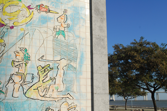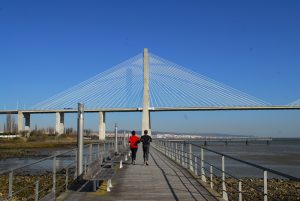 A ponte Vasco da Gama está cada vez mais presente no cenário, estamos a aproximar do final do nosso passeio e a receber-nos de braços abertos está uma escultura da Rainha D. Catarina de Bragança.