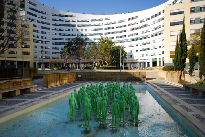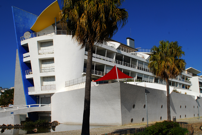 Quando caminhamos entre espaços arrelvados e pinheiros, no Passeio Heróis do Mar, devemos sair na travessa Corto Malteses para ir até à rua da Ilha dos Amores para ver o interior do conjunto de edifícios em forma de ferradura composto por jardim, lago e esculturas.