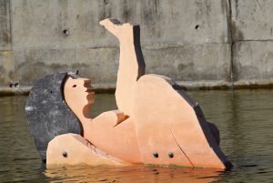 Entramos no Passeio das Tágides, talvez o troço com mais movimento e, mesmo em frente do Pavilhão Atlântico temos uma série de esculturas curiosas, em mármore, que se banham num pequeno lago. Mantendo-nos junto ao passeio marginal vamos entrar num conjunto de espaços temáticos que compõem o Jardim Garcia d’Orta.