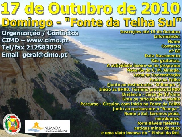 Mais informação: 17 de Outubro – domingo – Caminhada – ” Fonte da Telha Sul ”