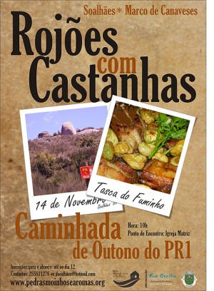 No próximo dia 14 de Novembro, a caminhada tem início ás 10h na nossa Igreja Matriz, rumo a Almofrela. O almoço será na Tasquinha do Fumo com uns saborosos rojões com castanhas. Para o almoço as inscrições são obrigatórias, impreterivelmente até ao dia 12, por email, ou por telefone, para a Junta de Freguesia: jfsoalhaes(at)hotmail(.)com ou 255511276. Cada refeição €10.