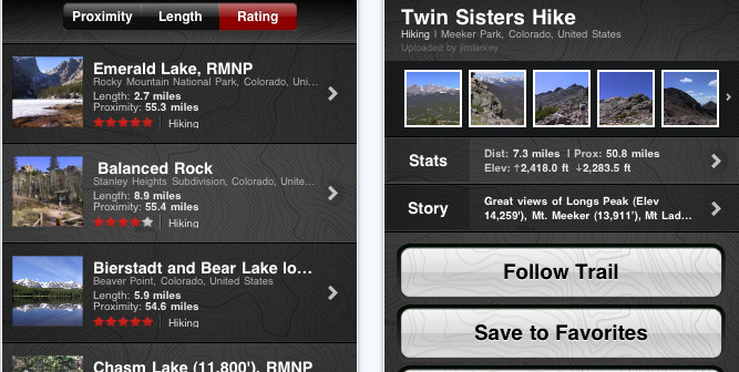A aplicação da The North Face ® Trailhead para o iPhone é um novo recurso muito interessante para caminhadas e explorações de terrenos. Em colaboração com EveryTrail.com, Trailhead encontra trilhos, caminhos, ciclovias e mais com base na sua localização.