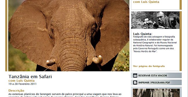 As extensas planícies do Serengeti servem de palco principal a uma viagem que nos leva ao encontro da mítica vida selvagem da savana africana. Grandes mamíferos, ferozes felinos, antílopes e aves de rapina interagem entre si como se de um bailado se tratasse. Embarque nesta viagem e fotografe da primeira fila este espectáculo natural. Percorremos a savana durante a grande migração, em que manadas intermináveis de gnus, zebras e gazelas se movimentam em busca dos melhores pastos. A bordo de robustos e confortáveis jipes de safari vamos percorrer, não só o PN Serengeti, como o interior da cratera de Ngorongoro. À noite, descontraia no conforto dos lodges, bem perto da vida selvagem. Regresse a casa com as suas fotos de leões em caçada, elefantes, rinocerontes, chitas…