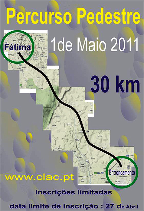 Vai-se realizar no dia 1 Maio de 2011 no Entroncamento, um mega passeio pedestre até Fátima. São 30km por caminhos rústicos e mista terra/estrada que demorará aproximadamente 7.30 horas.