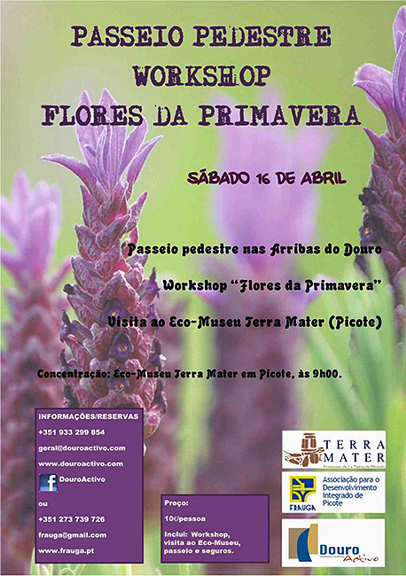 A Associação FRAUGA, através do Ecomuseu Terra Mater, vai organizar um workshop sobre flores de Primavera a decorrer no campo ao longo de dois percursos pedestres pré-definidos.