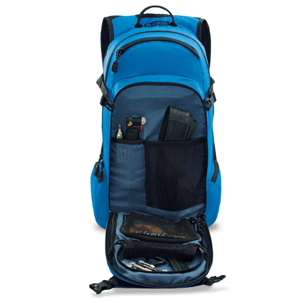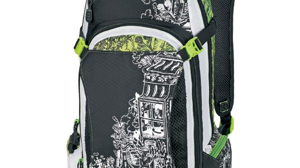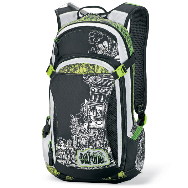 A Dakine AC Nomad Série Hidratação Pack tem alças para uma protecção integral, bem como uma bolsa para transportar um capacete e uma bolsa com um reservatório de líquidos no painel traseiro. O painel traseiro é moldado com ventilação de ar.