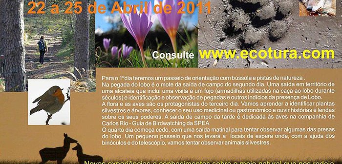 Com início às 14 horas de dia 22 de Abril o programa inclui orientação com pistas e bússola, saídas de campo de prospecção de flora e avifauna, saídas em território de lobo e esperas para tentar observar vida selvagem.