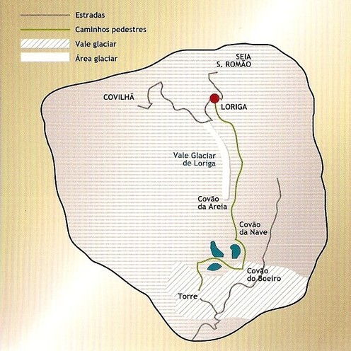 Situado na vertente oeste, o glaciar de Loriga quase atingia o local actual da vila. Tendo início a 1750 m de altitude, perto do Planalto da Torre, apresenta uma série de quatro covões (alguns com aproveitamento hidroeléctrico) que descem abruptamente uma extensão de 7 km.