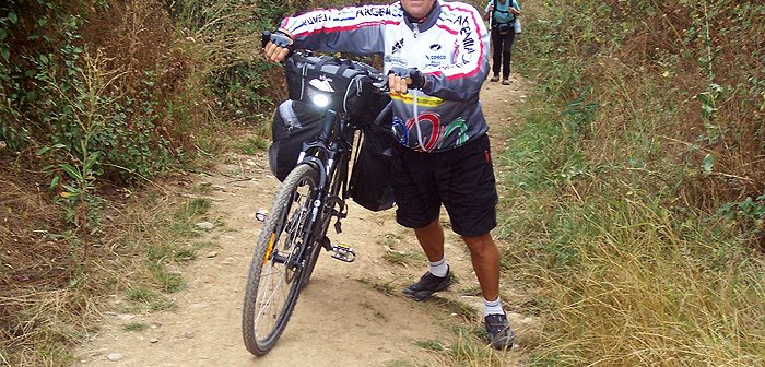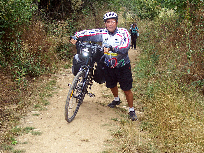 Ao chegár a Estella, agora já em companhia de Vítor e Camilo, dois espanhóis de perto de Algeciras que começamos por encontrar em Pamplona e que connosco fizeram parte da etapa anterior, aconteceu-me uma primeira contrariedade, um furo, felizmente estes amigos deram uma ajuda tão preciosa que praticamente nada tive que fazer. Camilo então, tratou praticamente de tudo, embora secundado pelos outros companheiros. No meio do azar a veio a sorte, possivelmente ainda agora lá estaria a mudar a roda!