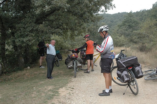 Não recomecei muito bem, porque furei, mal saímos de Burgos, um furo tem sempre um efeito psicológico negativo, mas neste caso, com a ajuda dos meus amigos recentes, os efeitos negativos foram minorados.
