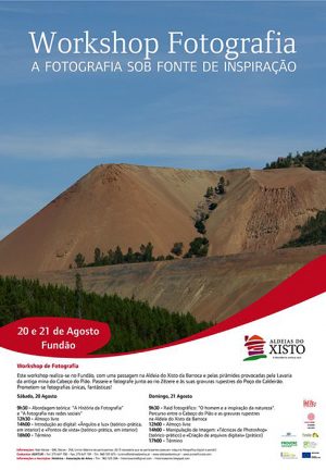 O Workshop tem início Sábado, dia 20 de Agosto, na Moagem e Cidade do Engenho e das Artes, na cidade do Fundão. Onde haverá uma introdução teórica aos trabalho a realizar, além dos temas “A História da Fotografia” e “A fotografia nas redes sociais”. Da parte da tarde haverá trabalhos práticos de interior.