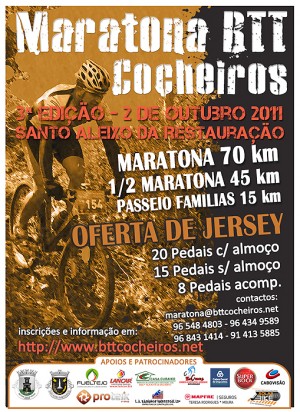 A Secção de Cicloturismo, BTT Cocheiros do Clube de Futebol Santo Aleixo da Restauração, irá organizar em 2 de Outubro de 2011 a “3ª Maratona BTT COCHEIROS”.