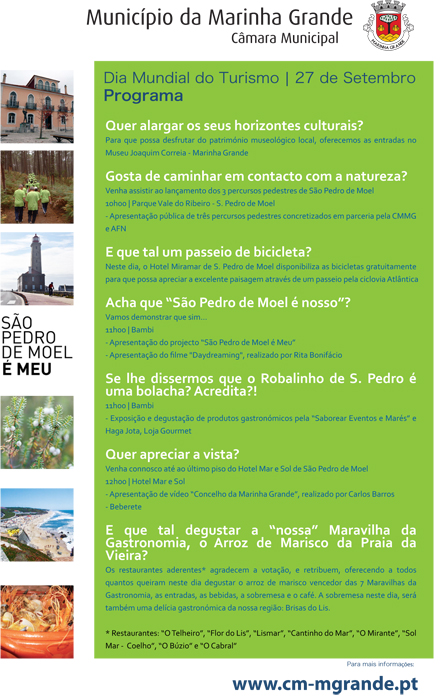 Programa do Município da Marinha Grande para assinalar o Dia Mundial do Turismo