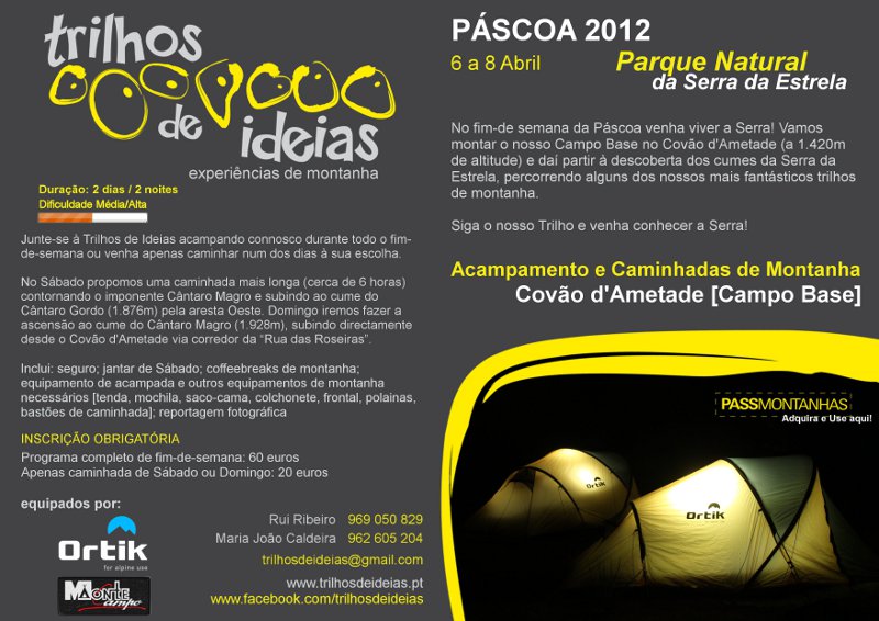 Junte-se à Trilhos de Ideias acampando connosco durante todo o fim-de-semana ou venha apenas caminhar num dos dias à sua escolha.