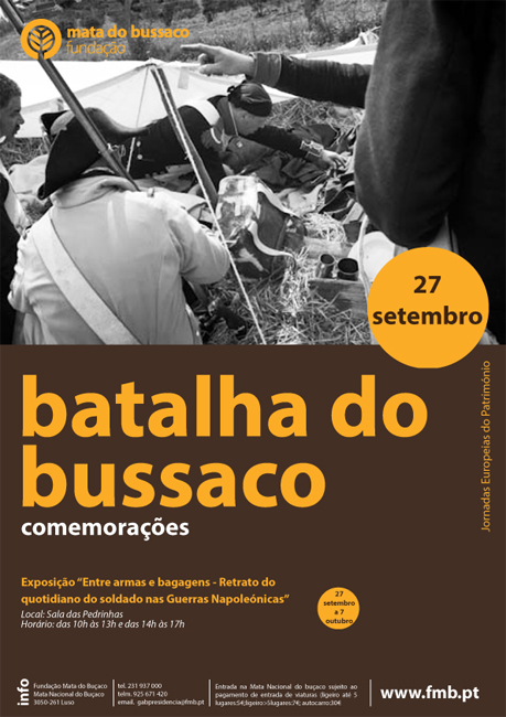 A exposição “Entre armas e bagagens – Retrato do quotidiano do soldado nas Guerras Napoleónicas”vai estar patente na Casa dos Brasões, no edifico do Palace Hotel do Buçaco, das 10h às 13h e das 14h às 17h, de dia 27 de setembro até dia 7 de outubro.