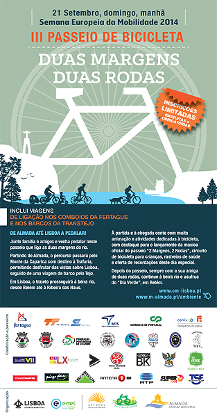 O Passeio “2 Margens, 2 Rodas” é uma organização da Câmara Municipal de Almada, AGENEAL – Agência Municipal de Energia de Almada, Câmara Municipal de Lisboa e EMEL.