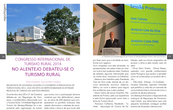 Reguengos de Monsaraz acolheu o Congresso Internacional de Turismo Rural 2014, uma iniciativa da responsabilidade da Entidade Regional de Turismo do Alentejo/Ribatejo.