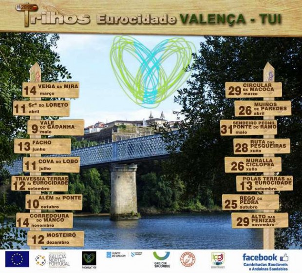 A primeira caminhada decorrerá no Trilho Interpretativo da Veiga da Mira, em Valença, sábado, 14 de março e o calendário prolonga-se até 12 de dezembro. Em Valença os trilhos decorrem sempre no segundo sábado de cada mês e em Tui no último domingo do mês.
