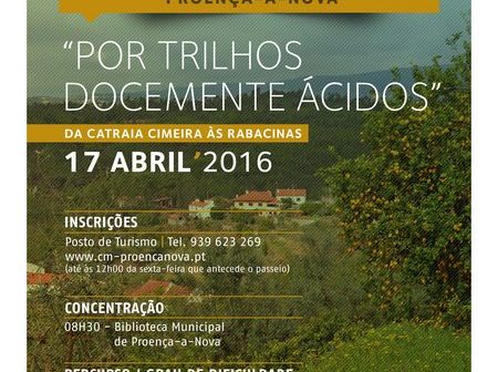 Continuando a travessia do concelho de Proença a Nova, este mês de Abril (dia 17) o passeio inicia-se na Catraia Cimeira, com passagem por olivais, pomares e vinhas, terminando na aldeia de Rabacinas onde será servido o almoço convívio. Esta zona do concelho é conhecida pela produção de citrinos, com especial incidência nos limões, e também de cerejas.