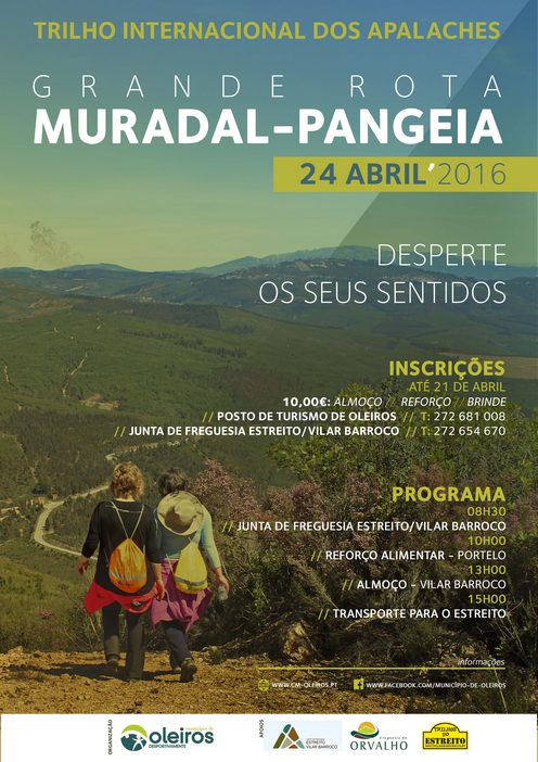 Realiza-se no próximo dia 24 de abril o passeio pedestre que irá percorrer parte da Grande Rota Muradal Pangeia (ou Trilho Internacional dos Apalaches português), num percurso de 12,6Km.