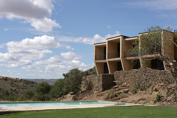 O projeto, assinado pelos arquitetos Pedro Brígida e Alice Faria, reinterpretou e reconverteu um conjunto de edifícios rústicos que se encontravam em ruínas, num moderno hotel com 13 quartos e uma suíte – distribuídos entre a singular “Casa dos Cabrais” e uma das “Casa de Campo” existentes – antigas habitações em xisto e granito de agricultores e pastores lusitanos.