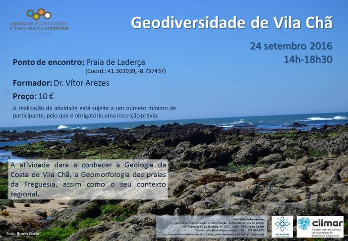 A atividade, com o ponto de encontro na entrada da praia de Laderça, dará a conhecer a Geologia da Costa de Vila Chã, a Geomorfologia das praias da Freguesia, assim como o seu contexto regional.