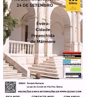 A actividade acontece no dia 24 de Setembro. O ponto de encontro é o Templo Romano da cidade. A partir daí, percorreremos a Sé de Évora e a Universidade, entre outros patrimónios edificados, e terminaremos o passeio com um almoço regional.