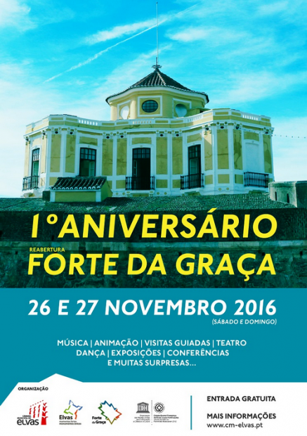 A Câmara Municipal de Elvas vai assinalar o primeiro aniversário da reabertura ao público do Forte da Graça, com diversas iniciativas ao longo dos dias 26 e 27 de novembro.