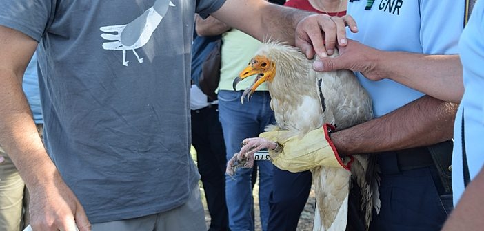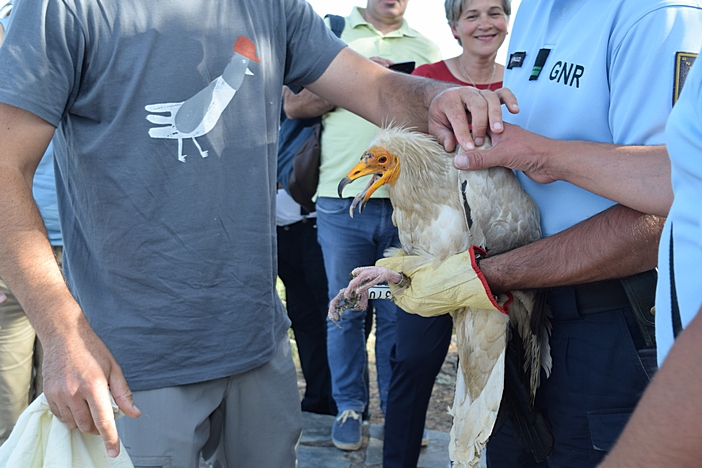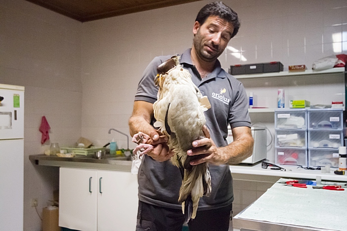 Capturada com uma armadilha instalada para o efeito, esta ave foi equipada com um emissor GPS e depois devolvida à natureza no mesmo local. Foram ainda recolhidas amostras de sangue para análise de eventuais contaminantes e doenças e para a identificação do sexo da ave, dado que nesta espécie não existem diferenças morfológicas visíveis entre os sexos.