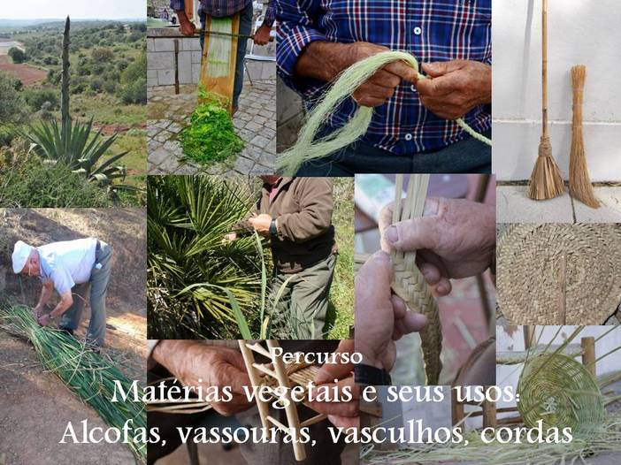 Nos meios rurais mantêm-se vivos alguns destes saberes e técnicas e transmitidos de geração em geração pela oralidade e observação. Através do contacto com artesãos no Baixo Guadiana, vamos conhecer os usos antigos de diversas matérias vegetais (palmeira anã, pita, cana, tabua, esparto…) disponíveis no território.