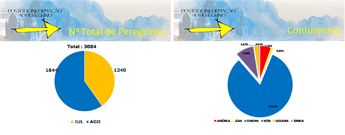 No Posto de informação de Darque, durante os meses de julho e agosto foram acolhidos 3084 peregrinos, tendo dominado as seguintes nacionalidades: alemães, espanhóis, italianos, polacos, portugueses e checos.
