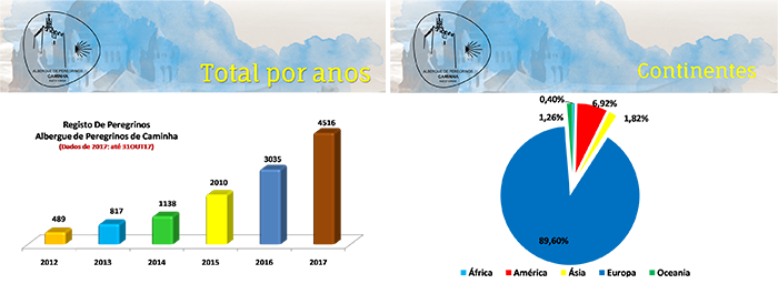 Relativamente ao Albergue de Peregrinos de Caminha, a evolução desde o seu ano de abertura em 2012, o aumento tem sido uma constante. De 489 peregrinos que passaram no Albergue em 2012, os números de janeiro a outubro de 2017 já totalizam 4516 peregrinos. Desde a inauguração do Albergue já se registaram peregrinos de 82 nacionalidades, dos 5 continentes. Salienta-se que menos de metade são europeus, (40 países), estando o continente americano com 19 registos, Ásia com 12, África com 8 e Oceania com 3.