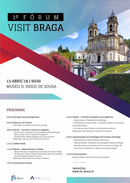 O 1º Fórum Visit Braga, uma iniciativa da Câmara Municipal e da Associação Comercial de Braga, estreia no dia 13 de abril, no Museu D. Diogo de Sousa, associando-se à Feira das Viagens, naquela que é uma das mais fortes afirmações do Município enquanto destino turístico nacional.
