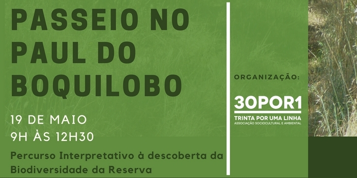 No próximo dia 19 de Maio, para comemorar as datas importantes que os meses de Maio e Junho nos trazem (Dia Internacional das Aves Migradoras – 12 de Maio, Dia Europeu da Rede Natura 2000 – 21 de Maio, Dia Internacional da Biodiversidade – 22 de Maio e o Dia Mundial do Ambiente – 5 Junho) a 30POR1LINHA – Associação Sociocultural e Ambiental preparou uma actividade na Reserva Natural do Paul do Boquilobo para comemorar com os sócios e amigos todas estas datas juntos.