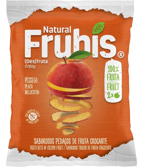 Frubis Pêssego nova receita acaba de chegar ao mercado para se juntar às restantes variedades da gama natural Frubis já disponíveis: Pera Rocha, Maçã Verde, Coco, Maçã Vermelha e Ananás.