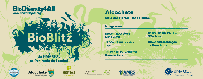 Inscrições em https://tinyurl.com/BioblitzAlcochete. e-mail de contacto para receber mais informações – biodiversity4all@gmail.com