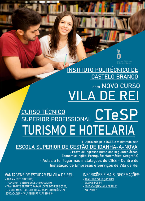 Vila de Rei vai receber, já no ano letivo 2024/2025, a realização de um Curso Técnico Superior Profissional (CTeSP) de Turismo e Hotelaria, promovido pelo Instituo Politécnico de Castelo Branco, em parceria com o Município de Vila de Rei.