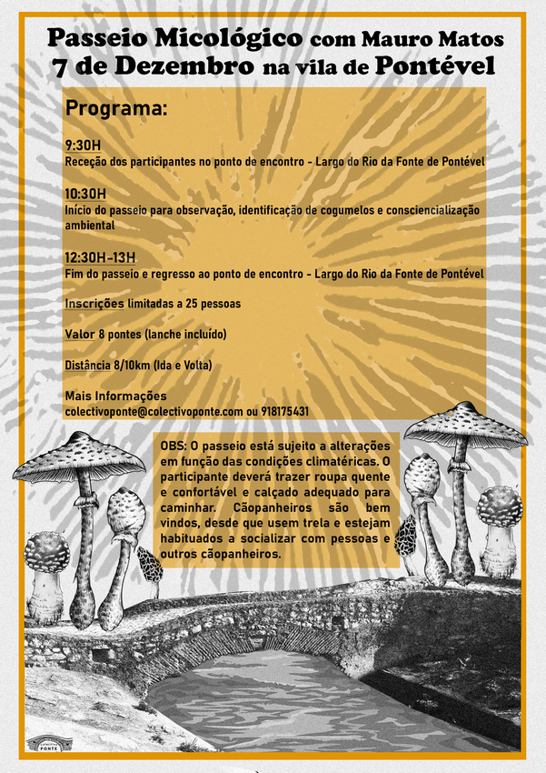 “O sucesso da primeira edição mostrou-nos a importância de iniciativas como esta para colocar Pontével no mapa de atividades que aliam educação e natureza. Este passeio é uma forma de explorar os nossos caminhos, aprender sobre os recursos que nos rodeiam e sensibilizar as pessoas para o potencial educativo da micologia”, sublinha Paulo Antunes, presidente do Colectivo Ponte.
