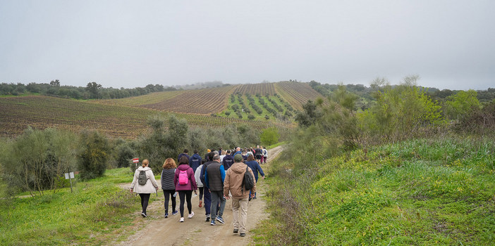 O Município de Reguengos de Monsaraz já tem disponíveis quatro percursos pedestres, um em cada freguesia do concelho. Os percursos Escritas de Pedra e Cal, Rota do Comboio, À Descoberta do Pinhal e Rota de São Marcos do Campo estão marcados e com painéis informativos em português e inglês, abrangendo rotas circulares de trilhos urbanos e rurais que podem ser feitos durante todo o ano para atenuar a sazonalidade turística no concelho, pois existe uma crescente procura deste produto turístico também na época baixa. Numa segunda fase, a autarquia pretende implementar mais quatro percursos pedestres, nomeadamente a Rota de São Gens, a Rota das Vinhas, a Rota de São Pedro do Corval e a Rota de Santo Amador, ficando cada freguesia com dois percursos.