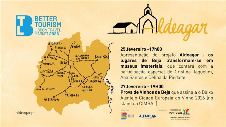 A Câmara Municipal de Beja vai apresentar o projeto ALDEAGAR – os lugares de Beja transformam-se em museus imateriais no âmbito da sua participação na Better Tourism Lisbon Travel Market 2026 (BTL 2026).